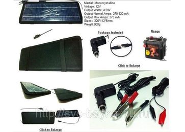 Мощность солнечной батареии: 3,5 Ватт Напряжение: 12 Вольт Размеры: 315х110х5mm
