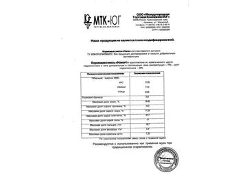 Закажите Комбикорма и кормовые смеси у компании ООО "МТК "Юг" в Армавире на портале Alloy: