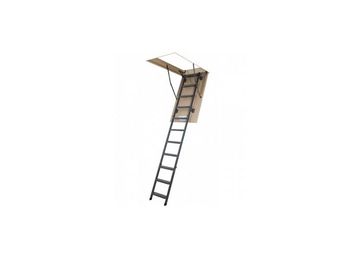 Крепкая складная лестница из металлического профиля с резиновыми наконечниками на ножках. Крышка люка – термоизоляционная, с уплотнителем по контуру, изготовлена из ДСП. Цвет – бежевый, подходит к любому светлому потолку. Модель обладает высокой нагрузочной способностью – 200 кг. на ступень. None