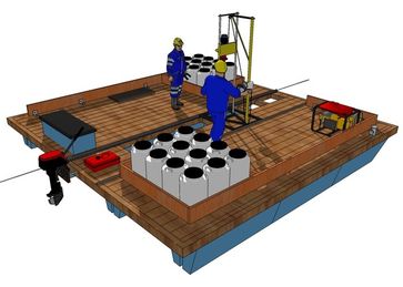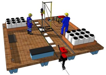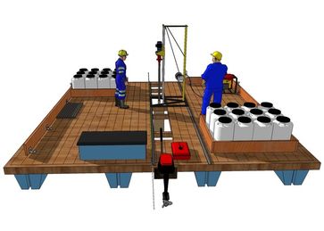 Оборудование предназначено для добычи озерных лечебных грязей с глубины от 1.0 м до 25 м. Состоит из самоходного понтона на тросовой растяжке с подвесным лодочным мотором и собственно добычного оборудования на нем. Забор лечебных грязей с глубины осуществляется как желонкой, так и песковым насосом. Производительность – до 8000 л/час, энергопотребление – 2,0 кВт, обслуживание – 2 чел. Время монтажа на месте работ – 1 смена. Стоимость – от 1420 тыс. руб. до 1860 тыс. руб. Поставляется как с проектно-технологическим обоснованием, так и отдельно, только оборудование.