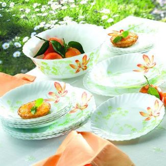 Столовый сервиз из 33 предметов на 6 персон, материал - упрочненное стекло, лаконичный дизайн, цвет: салатовый с рисунком цветы , серия COLCHIC, производитель: Luminarc (Франция). None Возможен самовывоз. Есть доставка.