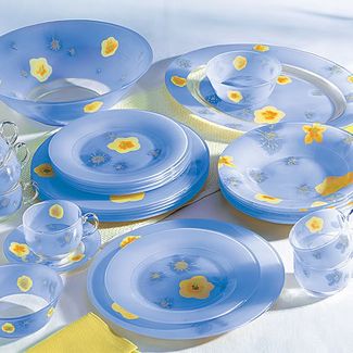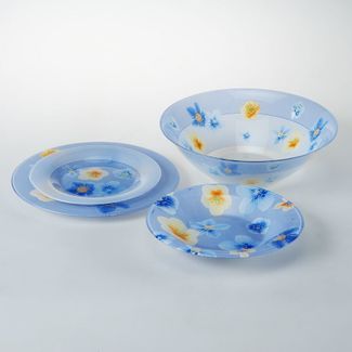 Столовый сервиз на 6 персон, серия POEME BLEU, материал: ударопрочное стекло, производство - Франция, цвет: голубой, рисунок: цветочный принт None Возможен самовывоз. Есть доставка.
