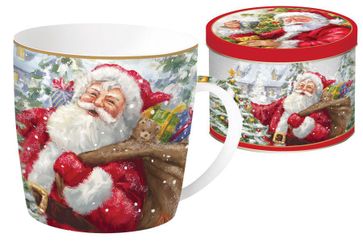 Кружка Дед Мороз с подарками в металлической подарочной коробке
