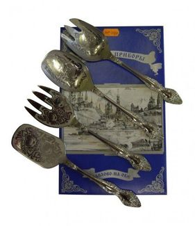 Набор столовых приборов для салата из 4 предметов с художественным рисунком, производство Россия None Возможен самовывоз. Есть доставка.