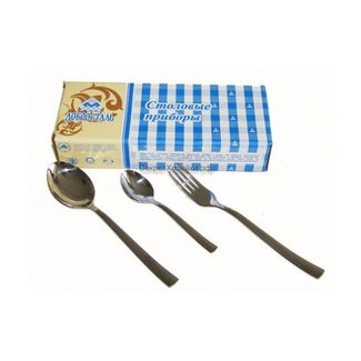 Набор столовых приборов, 18 предметов, состав: нержавеющая сталь 18/0, 13/0, толщина стали - 2 мм, картонная коробка, произведено в России на заводе ОАО "Нытва" (г. Нытва) None Возможен самовывоз. Есть доставка.