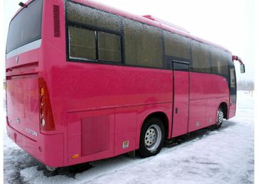 Основные параметры автобуса Foton BJ 6830U6LFB-1 ГАБАРИТЫдлина/ширина/высота (мм) 8350/2430/3400КОЛЕСНАЯ БАЗА (мм) 3950ПОЛНАЯ МАССА ТС (кг) 14200КЛИРЕНС, мм 250Количество посадочных мест 31 +1+1ДВИГАТЕЛЬМодель YC6J200-30, дизельный, рядный, 6-ти цилиндровый, четырехтактный двигатель, жидкостного охлаждения, с турбокомпрессором и интеркулером.Максимальная скорость (км/ч) 110Расход топлива (л/100 км) 22Емкость топливного бака (л) 220Мощность двигателя (л.с.) 220Рабочий объем (л) 6, 5Топливо дизельноеКрутящий момент, Нм/об.мин 710 Нм/(1400-1600 об.мин)Стандарт выбросов EURO IVПАРАМЕТРЫ ШАССИКПП Механическая, 6 ступенчатаяСцепление Однодисковое, сухоеЗадний мост Одноступенчатый редуктор, гипоидная коническая зубчатая передачаПередний мост ПортальныйПодвеска ПневматическаяРабочая тормозная система Пневматическая, двухконтурная, ABSТормозные механизмы (передние) БарабанныеТормозные механизмы (задние) БарабанныеСтояночный тормоз Привод от пружинных энергоаккамуляторов Антиблокировочная система (ABS) WABCOШины 9R22.5 БАГАЖНОЕ ОТДЕЛЕНИЕ2 отсека, сквозноеОСНАЩЕНИЕ САЛОНАДвери 2 двери, пневмоуправляемые, слайдинговые, открываются наружуВнутренняя отделка салона Кондиционер со встроенной вентиляцией, внутренняя полка для багажаСидения Регулируемые пассажирские сидения и сидение водителя, сидение для экскурсоводаСистема кондиционирования Система кондиционирования с индивидуальной подачей на каждое место пассажира (20000kcal)Система обогрева Дефростер лобового стеклаАудио-видео система Кассетная магнитола с радиоприемникомАудио-видео система Зеркала с электроприводом и подогревомОсветительные приборы Внутреннее переднее потолочное освещение, освещение подножки, лампочка для чтения.ПРОЧЕЕ ОСНАЩЕНИЕэлектронные часызан