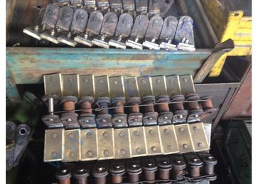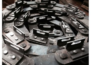 Барнаульский завод цепей производит и реализует цепи тяговые пластинчатые всех типов. Принимаем заказы на изготовление нестандартных цепей с различными присоединительными элементами по чертежам и образцам заказчика. Цепи тяговые пластинчатые ГОСТ 588-81 изготавливаются следующих типов: 1 - втулочные; 2 - роликовые; 3 - катковые с гладкими катками с подшипниками скольжения; 4 - катковые с ребордами на катках с подшипниками скольжения. По конструкции цепи каждого типа изготавливаются следующих исполнений: 1 - неразборная цепь со сплошными валиками (индекс М); 2 - разборная цепь со сплошными валиками (индекс М); 3 - неразборная цепь с полыми валиками (индекс МС). Принимаем заказы на изготовление нестандартных цепей с различными присоединительными элементами по чертежам и образцам заказчика.