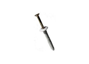 Дюбель – гвоздь - специализированный гвоздь с потайным бортиком, полипропиленовый, предназначен для крепления к бетону, полнотелым материалам, кирпичу, пенобетону, всевозможных деревянных деталей, включая обрешетку под штукатурку, рамы, стыковочные стеновые или штукатурные профили, настенные уголки, а также кабельные каналы, (зажимы) для кабеля и труб, тонколистовой стали и т.п.