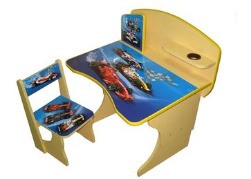 Парта изготовлена из ДСП. Изображение на столешнице и стульчиках ламинировано, что сохраняет яркие цвета надолго, парта будет выглядеть как новая еще много лет.