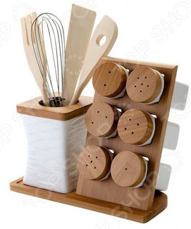 Набор кухонных принадлежностей Dekok PW-2719 придется по душе любой хозяйке. Комплект включает все необходимые инструменты, изготовлены из экологически чистого материала древесины. Интересный дизайн набора впишется в любой интерьер и станет прекрасным и практичным украшением любого стола. Готовьте с удовольствием! Набор включает наиболее используемые элементы: лопатки, ложки, венчик, которые всегда должны быть под рукой. С таким набором вам больше не придется терять время на поиск нужного столового прибора. Длина лопатки, вилки, ложки 25,5 см. Длина венчика 25 см. Размер подставки для приборов 8,5х8,5х11,5 см. Высота солонки, перечницы 9,2 см. Диаметр солонки, перечницы по верхнему краю 4,7 см. Размер подставки 23,5х10,8х 20 см. None Возможен самовывоз. Есть доставка.