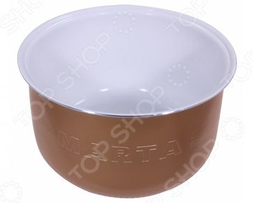 Чаша для мультиварки Marta MT-MC3121 - дополнительная чаша для мультиварки объемом 5 л, которая позволяет приготовить различные блюда без добавления масла или жира. Чаша имеет утолщенные стенки 1,8 мм и двухслойное керамическое покрытие, которое не окисляется, не сдержит вредные примеси и равномерно распределят тепло. Чаша выдерживает высокие температуры без ущерба для своих технических и качественных характеристик. Керамика уменьшает потерю естественных питательных веществ при термической обработки продуктов, сохраняет их вкус и аромат. None Возможен самовывоз. Есть доставка.
