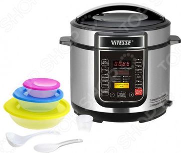 Мультиварка-скороварка Vitesse VS-3004 устройство, которое необходимо каждой хозяйке. Это идеальное сочетание стильное дизайна, широкого функционала и практичности. Удобная рукоятка обеспечит комфортную транспортировку прибора. Наличие 75-ти программ ручной настройки поможет определить нужные параметры для приготовления вкусного и полезного блюда. Управление устройством осуществляется очень просто нажатие кнопки на корпусе поможет выбрать нужный режим работы. Предустановленное время приготовления появится на LED-дисплее. Объема чаши в 5л достаточно для приготовления супов и вторых блюд для большой семьи. Внутреннее покрытие из керамики предотвращает пригорание продуктов, способствует равномерному распределению тепла и снижать объем необходимого количества масла и воды. Готовьте с удовольствием! Одним из основных преимуществ прибора является режим голосового сопровождения, который поможет начинающему пользователю и подскажет последовательность действий в процессе приготовления блюда. Эта функция также оповещает, когда блюдо готово. Пользователю доступно 13 автоматических программ: рис крупы ; молочная каша; каша; бобовые; тушение; запекание; обжарка; выпечка; рыба; овощи; птица; мясо; йогурт. Как только завершится процесс приготовления блюда, устройство автоматически перейдет в режим поддержание тепла . В течение 8-ми часов будет поддерживаться комнатная температура блюда. Приготовить блюдо к определенному времени, например к завтраку, можно, применяя функцию отложенный старт до 24 часов. None Возможен самовывоз. Есть доставка.