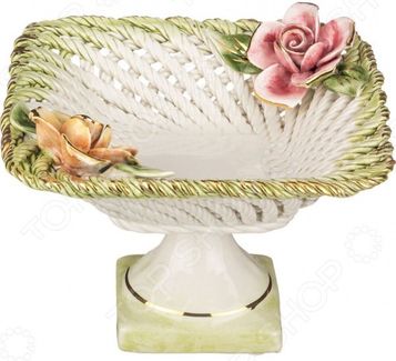Конфетница на ножке Lanzarin Розы изящная ваза для подачи десерта. Это может быть не только фруктовое ассорти, но и печенье, конфеты, кексы. Любое сладкое блюдо в такой посуде будет выглядеть еще аппетитнее. Сервируем стол со вкусом Посуда изготовлена из керамики высокого качества. Материал прочен и надежен, не содержит компонентов, которые могут повлиять на вкус пищи. Керамика подходит для длительного хранения продуктов и не впитывает запахи. Изящная ножка придает блюду особую утонченность и делает сервировку более удобной. Емкость расположена на устойчивом основании. Широкие бортики увеличивают вместимость блюда и не дают пище соскользнуть. Слой глазури придает конфетнице красивый блеск и обеспечивает стойкость к царапинам. Белый цвет прекрасно гармонирует с цветочной отделкой и плетенной фактурой. Блюдо оформлено в виде милой корзинки, оно станет украшением интерьера кухни и гостиной. None Возможен самовывоз. Есть доставка.