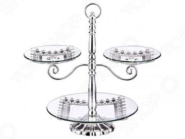 Конфетница 3-х ярусная Lefard 258-245 изящная ваза для подачи десерта. Это может быть не только фруктовое ассорти, но и печенье, конфеты, кексы. Любое сладкое блюдо в такой посуде будет выглядеть еще аппетитнее. Сервируем стол со вкусом Ярусы выполнены из стекла. Материал не содержит компонентов, которые могут повлиять на вкус пищи. Стекло подходит для длительного хранения продуктов, легко очищается и не впитывает запахи. Конструкция располагается на прочной металлической ножке с наконечником в виде кольца. Он используется в качестве рукоятки, обеспечивает удобную сервировку блюд и хранение посуды. Блюдо располагается на круглом устойчивом основании. Серебристый оттенок гармонирует с прозрачным гладким стеклом и рельефной отделкой. Благодаря своему изысканному оформлению конфетница станет великолепным украшением интерьера кухни и гостиной. Диаметр маленьких блюд 19 см, диаметр большого 30 см. None Возможен самовывоз. Есть доставка.