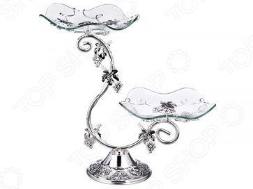 Конфетница 2-х ярусная Lefard 258-247 изящная ваза для подачи десерта. Это может быть не только фруктовое ассорти, но и печенье, конфеты, кексы. Любое сладкое блюдо в такой посуде будет выглядеть еще аппетитнее. Сервируем стол со вкусом Оригинальная форма посуды с 2 емкостями, расположенными на 2 ярусах. Основная конструкция, на которой располагаются блюда, напоминает ветку дерева. Она изготовлена из стали материал придает блюду особую утонченность и делает сервировку более удобной. Емкости выполнены из стекла. Материал прочен и надежен, не содержит компонентов, которые могут повлиять на вкус пищи. Стекло подходит для длительного хранения продуктов и не впитывает запахи. Блюдо располагается на устойчивом основании. Серебристый оттенок гармонирует с прозрачным гладким стеклом и отделкой в виде виноградной лозы. Благодаря своему изысканному оформлению конфетница станет великолепным украшением интерьера кухни и гостиной. Размер блюда 21х21 см. None Возможен самовывоз. Есть доставка.