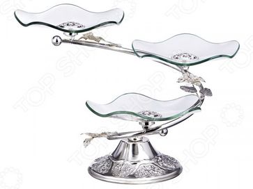 Конфетница 3-х ярусная Lefard 258-250 изящная посуда для подачи десерта. Это может быть не только фруктовое ассорти, но и печенье, конфеты, кексы. Любое сладкое блюдо в такой 3-уровневой вазе будет выглядеть еще аппетитнее. Сервируем стол со вкусом Ярусы выполнены из стекла. Материал не содержит компонентов, которые могут повлиять на вкус пищи. Стекло подходит для длительного хранения продуктов, легко очищается и не впитывает запахи. Конструкция располагается на прочной изогнутой ножке из стали. Металл имеет зеркальную полировку, отделан рельефными вставками в виде цветов. Блюдо располагается на круглом устойчивом основании. Серебристый оттенок гармонирует с прозрачным гладким стеклом. Благодаря своему изысканному оформлению конфетница станет великолепным украшением интерьера кухни и гостиной. Диаметр блюд 17 см. None Возможен самовывоз. Есть доставка.