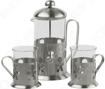 Френч-пресс с набором стаканов Rosenberg RSG-660009-M предназначен для приготовления натуральных чайных или кофейных напитков. Уникальный и современный дизайн френч-пресса выполнен по технологии глубоко травления. Колба пресса выполнена из жаропрочного стекла, который способен выдерживать высокие температуры, а сам фильтр из нержавеющей стали. Этот технологичный материал обеспечивает долговечность и практичность изделия. Для идеально чистого напитка Главное достоинство этого практичного заварника с прессом заключается в том, что он позволяет получить очень чистый и ароматный напиток без примесей и постороннего привкуса. Фильтр-поршень из нержавеющей стали выполнен по технологии press-up и обеспечивает равномерную циркуляцию воды. С его помощью вы сможете полностью раскрыть вкус чая, позволив каждой чаинке отдать свой вкус, цвет и аромат. Кофе, приготовленное в таком заварнике, получается не таким густым и горьким, как в турке, но живым и богатым вкусом, ароматом. Главные достоинства френч-пресса Rosenberg Легко разбирается и моется. Металлический фильтр не пропускает осадок и тяжелые масла, поэтому напиток будет чистым . Компактные размеры и практичная конструкция обеспечивают удобство в использовании. Крепость напитка можно регулировать, самостоятельно устанавливая время заваривания. Стеклянная колба позволяет наблюдать за процессом заваривания. Поршень опускается очень легко и плотно прижимает заварочный материал. Сильный и красивый дизайн позволяет устанавливать заварник прямо на праздничном столе. Оптимальный объем 600 мл. Удобная ненагревающаяся ручка. Специальная конструкция крышки позволяет надолго сохранить температуру вашего напитка. Удобный и компактный прибор станет незаменимым приспособлением для тех, кто ценит натуральные чайные и кофейные напитки, приготовленные собственными руками. В комплекте предусмотрены 2 чашки объемом 200 мл, которые выполнены в едином с френч-прессом дизайне. Этот удивительный комплект станет великолепным подарком ил