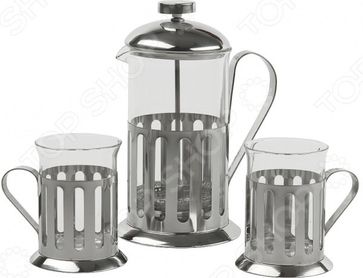 Френч-пресс с набором стаканов Rosenberg RSG-660010-M предназначен для приготовления натуральных чайных или кофейных напитков. Уникальный и современный дизайн френч-пресса выполнен по технологии глубоко травления. Колба пресса выполнена из жаропрочного стекла, который способен выдерживать высокие температуры, а сам фильтр из нержавеющей стали. Этот технологичный материал обеспечивает долговечность и практичность изделия. Для идеально чистого напитка Главное достоинство этого практичного заварника с прессом заключается в том, что он позволяет получить очень чистый и ароматный напиток без примесей и постороннего привкуса. Фильтр-поршень из нержавеющей стали выполнен по технологии press-up и обеспечивает равномерную циркуляцию воды. С его помощью вы сможете полностью раскрыть вкус чая, позволив каждой чаинке отдать свой вкус, цвет и аромат. Кофе, приготовленное в таком заварнике, получается не таким густым и горьким, как в турке, но живым и богатым вкусом, ароматом. Главные достоинства френч-пресса Rosenberg Легко разбирается и моется. Металлический фильтр не пропускает осадок и тяжелые масла, поэтому напиток будет чистым . Компактные размеры и практичная конструкция обеспечивают удобство в использовании. Крепость напитка можно регулировать, самостоятельно устанавливая время заваривания. Стеклянная колба позволяет наблюдать за процессом заваривания. Поршень опускается очень легко и плотно прижимает заварочный материал. Сильный и красивый дизайн позволяет устанавливать заварник прямо на праздничном столе. Оптимальный объем 600 мл. Удобная ненагревающаяся ручка. Специальная конструкция крышки позволяет надолго сохранить температуру вашего напитка. Удобный и компактный прибор станет незаменимым приспособлением для тех, кто ценит натуральные чайные и кофейные напитки, приготовленные собственными руками. В комплекте предусмотрены 2 чашки объемом 200 мл, которые выполнены в едином с френч-прессом дизайне. Этот удивительный комплект станет великолепным подарком ил
