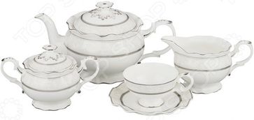 Чайный сервиз Lefard 586-327 станет отличным дополнением к набору посуды и прекрасно подойдет для сервировки праздничного чаепития. Он рассчитан на шесть персон и, помимо традиционных чашек с блюдцами, также включает в себя заварочный чайник, сахарницу и молочник. Посуда выполнена из фарфора, отличается изысканным дизайном и великолепным качеством исполнения. Все предметы выполнены в едином стиле и украшены изящным рисунком. Вместе они создают единый ансамбль и стилистически дополняют друг друга. Особенности и преимущества Изысканный дизайн. Волнистые края. Оригинальный рисунок. Высококачественный фарфор. Lefard лучшее для вас Торговая марка Lefard уже на протяжении многих лет пользуется неизменной популярностью на рынке посуды. При создании своей продукции компания использует как традиционные, так и современные тенденции, что позволяет добиться высоких стандартов качества и удовлетворить пожелания любых, даже самых взыскательных, покупателей. None Возможен самовывоз. Есть доставка.