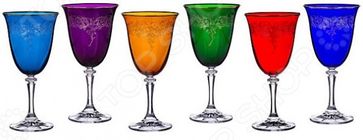 Набор бокалов для вина Crystalite Kleopatra 669-190 это сочетание непревзойденного качества и стильного изысканного дизайна. Утонченные и изящные они как нельзя лучше подойдут для сервировки праздничного стола и подачи красных и белых вин. Чаша у бокалов имеет слегка удлиненную округлую форму. Это позволяет в полной мере насладиться ароматом и ни с чем не сравнимым вкусом напитка. Особенности и преимущества Яркий красочный дизайн. Традиционная форма чаши. Тонкая изящная ножка добавляет бокалам особой элегантности и эстетичности. Устойчивость к появлению сколов и царапин бокалы выполнены из высококачественного, устойчивого к механическим повреждениям материала. В качестве материала для бокалов используется высококачественное стекло. Набор рассчитан на шесть персон. None Возможен самовывоз. Есть доставка.