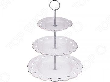Фруктовница трехъярусная Lefard Sweet love 151-110 изящная ваза для подачи десерта. Это может быть не только фруктовое ассорти, но и печенье, конфеты, кексы. Любое сладкое блюдо в такой посуде будет выглядеть еще аппетитнее. Сервируем стол со вкусом Ярусы выполнены из керамики. Материал прочен и надежен, не содержит компонентов, которые могут повлиять на вкус пищи. Керамика подходит для длительного хранения продуктов и не впитывает запахи. Конструкция располагается на прочном металлическом стержне с наконечником в виде кольца. Он используется в качестве рукоятки, обеспечивает удобную сервировку блюд и хранение посуды. Благодаря своему изысканному оформлению посуда станет великолепным украшением интерьера кухни и гостиной. Диаметр ярусов: 15 см, 20 см и 26 см. None Возможен самовывоз. Есть доставка.