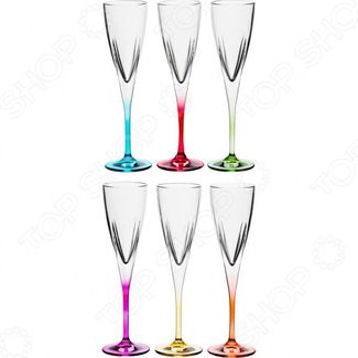 Набор бокалов для шампанского RCR Фьюжн Колорс 305-128 это сочетание непревзойденного качества и стильного изысканного дизайна. Утонченные и изящные они как нельзя лучше подойдут для сервировки праздничного стола и подачи шампанского и игристых вин. Чаша у бокалов имеет традиционно глубокую и узкую форму. Это позволяет в полной мере насладиться игрой искристых пузырьков и ни с чем не сравнимым вкусом напитка. Особенности и преимущества Традиционная форма. Яркий красочный дизайн. Тонкая изящная ножка добавляет бокалам особой элегантности и эстетичности. Устойчивость к появлению сколов и царапин бокалы выполнены из высококачественного, устойчивого к механическим повреждениям материала. В качестве материала для фужеров используется высококачественное стекло. Набор рассчитан на шесть персон. None Возможен самовывоз. Есть доставка.