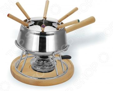 Фондю Vitesse VS-1865, рассчитанный на 6 персон, выполнен из нержавеющей стали и дерева. В набор входят: кастрюля для фондю, подставка для кастрюли, , горелка, шесть вилок. В наши дни фондю имеет много вариантов, когда, кроме хлеба, подают кубики мяса, овощей или рыбы, а вместо сыра используют масло. Традиционно фондю устраивают вечером и приглашают небольшое количество гостей, которых рассаживают за столом, в центре которого располагается фондюшница. Это будет замечательным подарком на любой праздник. None Возможен самовывоз. Есть доставка.