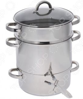Соковарка Wellberg WB-1256 предназначена для приготовления вкуснейших соков в домашних условиях. В качестве сырья можно использовать фрукты, ягоды или овощи. Комплект для изготовления сока состоит из: паровой корзины 25х16 см 8 литров ; кастрюли для сбора сока с силиконовой трубкой 25х16 см 2,9 литра ; нижней кастрюли 25х11 см 3,3 литра ; стеклянной кастрюли. Принцип работы соковарки Заранее промытые фрукты или ягоды поместите в паровую сетчатую корзину. Если плоды крупные, необходимо предварительно их измельчить. Если вы готовите сок из фруктов или ягод, добавьте к ним сахар; если из овощей соль. Вскипятите достаточное количество воды в нижней кастрюле. Как только вода будет готова, соберите всю конструкцию в таком порядке: нижняя кастрюля, емкость для сбора сока и корзина с фруктами. Накройте соковарку крышкой и поставьте на плиту. Предварительно зафиксируйте зажим на трубке или подставьте под нее емкость для сока банку, бутылку . Натуральные соки каждый день На нижней кастрюле предусмотрена мерная шкала. Стальные кромки на стыках емкостей обеспечивают герметичность и предотвращают разливание жидкости в процессе готовки. Стеклянная крышка формирует оптимальный температурный режим и позволяет контролировать процесс готовки. В ней есть отверстие для выхода пара. Надежные литые рукоятки обеспечивают удобство готовки. На силиконовой трубке имеется зажим, который помогает контролировать процесс переливания сока. None Возможен самовывоз. Есть доставка.