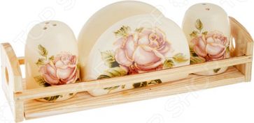 Набор для специй Loraine Розы 21672 обязательно пригодится на кухне. Он всегда будет под рукой, если вы занимаетесь готовкой или хотите дополнить блюдо особым штрихом. Основной материал доломит; он не впитывает запахи и подходит для длительного хранения продуктов. Доломит легко очищается от загрязнений и не содержит вредных примесей. Баночки подойдут не только для соли и перца, но и для других специй. Глазурованное покрытие надежно защищает изделия от царапин и придает им красивый блеск. На дне имеются герметичные отверстия для заполнения емкостей и их очищения. Баночки украшены изысканным рисунком с розами они будут не только полезны, но и украсят интерьер кухни. В комплекте имеется деревянная подставка размер 21,5х6,5х5 см ; она обеспечит удобное хранение предметов и поможет избежать беспорядка. Ограничитель на подставке предотвратит соскальзывание предметов. Размер емкостей 4,3х4,3х6,5 см, размер салфетницы 9,5х4,5х7 см. None Возможен самовывоз. Есть доставка.
