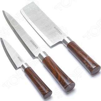 Набор ножей Mayer Boch MB-27429 для ежедневной нарезки фруктов, овощей и мяса. Этот комплект сделает готовку максимально приятной, а вашему блюду будет обеспечен абсолютный успех. В наборе вы найдете: нож для рубки длина лезвия 17,5 см ; разделочный нож длина лезвия 20,5 см ; универсальный нож длина лезвия 12,5 см . Готовьте с удовольствием Стальные лезвия с износоустойчивой режущей кромкой легко справятся с нарезкой продуктов. Материал длительное время сохраняет остроту, не подвергается коррозии и не придает пище металлический привкус. Особое покрытие лезвий предотвращает прилипание пищи и обеспечивает их легкую очистку. Эргономичные рукоятки из полипропилена они удобно лежат в ладонях, не скользят и способствуют равномерному распределению нагрузки при длительной нарезке продуктов. Отделаны под натуральную древесину. Очищение, измельчение и порционная сервировка теперь будут проходить легко и быстро. Ведь в вашем распоряжении будет первоклассный набор ножей от бренда Mayer Boch. None Возможен самовывоз. Есть доставка.