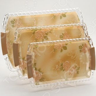 Набор подносов Mayer Boch MB-3248 Чайная роза станет отличным дополнением к набору кухонных принадлежностей. В комплект входят три, разные по размеру, прямоугольных подноса. Изделия выполнены из высококачественного пластика и декорированы оригинальным цветочном рисунком. Для удобства использования подносы оборудованы бортиками. Торговая марка Mayer Boch это синоним первоклассного качества и стильного современного дизайна. Компания занимается производством и продажей кухонных инструментов, аксессуаров, посуды и т.д. Функциональность, практичность и инновационные решения вот основные принципы торгового бренда Mayer Boch. None Возможен самовывоз. Есть доставка.
