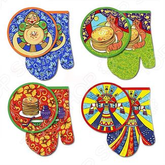 Товар продается в ассортименте. Цвет изделия при комплектации заказа зависит от наличия товарного ассортимента на складе. Кухня или столовая место, где всегда тепло и уютно, вкусно и аппетитно пахнет. Немалая доля уюта зависит от окружающего вас текстиля. Именно полотенца, скатерти, салфетки и другой интерьерный текстиль создают удивительную атмосферу комфорта. Стильный и элегантный набор из рукавицы и прихватки имеет не только строго функциональное предназначение, но также может послужить украшением вашей кухни. Стильная и надежная защита для ваших рук Набор: прихватка с рукавицей Мультидом Масленица Z22-56 комплект незаменимых атрибутов любой хозяйки, без которых невозможно представить ни одну современную кухню. Стильная и элегантная рукавица и прихватка послужат надежной защитой ваших рук от горячих кастрюль, сковородок и блюд. С её помощью вы без труда достанете противень или форму из раскаленной духовки! Яркий и стильный дизайн делает изделия великолепным функциональным украшением вашей кухни. Рабочая часть рукавицы и прихватки выполнена из натуральной хлопковой ткани, которая отличается простотой в уходе. Изделия также обладают рядом других преимуществ: прочная хлопковая ткань устойчива к бытовому износу; легко выдерживают высокие температуры, поэтому ваши руки не пострадают; удобная и практичная форма изделий позволяет легко обращаться даже с небольшими предметами; качественная прошивка не позволит прихватке и рукавице расползтись со временем; красочный и яркий принт будет радовать вас своими насыщенными цветами долгое время. Для более надежной защиты от высоких температур изделия усилены хлопковым наполнителем. Рукавица дополнительно оформлена подкладкой из нетканого полипропилена. None Возможен самовывоз. Есть доставка.