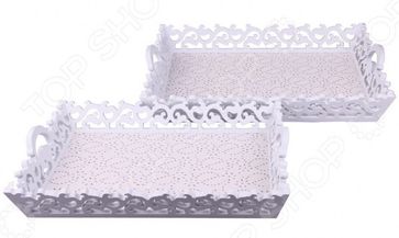 Набор подносов Patricia IM99-5302 изящные предметы, оснащенные удобными ручками для переноски. Незаменимы при сервировке праздничного стола и подачи различных блюд, конфет, печенья, фруктов и прочих вкусностей. Оригинальный дизайн изделия оценят любители изысканной классики. Обладают уникальным сочетанием стильной формы и функциональности. Сделаны из МДФ материал абсолютно безопасен и не вступает в реакцию с продуктами, а также не влияет на запах и вкус готовых блюд. В наборе: Поднос, длина 46 см, ширина 34 см. Поднос, длина 40 см, ширина 30 см. None Возможен самовывоз. Есть доставка.