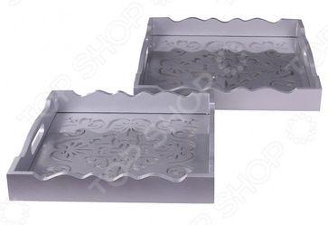Набор подносов Patricia IM99-5306 изящные предметы из стекла и МДФ, оснащенные удобными ручками для переноски. Незаменимы при сервировке праздничного стола и подачи различных блюд, конфет, печенья, фруктов и прочих вкусностей. Оригинальный дизайн изделия оценят любители изысканной классики. При изготовлении были использованы инновационные технологии и материалы. Обладает уникальным сочетанием стильной формы и функциональности. Материал абсолютно безопасен и не вступает в реакцию с продуктами, а также не влияет на запах и вкус готовых блюд. В наборе: Поднос, ширина 35 см, длина 35 см. Поднос, ширина 30 см, длина 30 см. None Возможен самовывоз. Есть доставка.