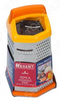 Терка с контейнером Regent 93-AC-GR-05 удобное и незаменимое приспособление на кухне любой современной хозяйки. Шестигранная терка выполнена из нержавеющей стали марки 18 10, которая отливается своей износостойкостью и долговечность. Удобная пластмассовая ручка позволяет придерживать терку во время использования, не давая ей скользить по поверхности столешницы. Для большего удобство предусмотрен контейнер-подставка, куда вы сможете натереть все необходимые ингредиенты. Грани с различными вариантами режущих поверхностей позволяют натереть продукты соломкой разной величины и вида. Высота терки составляет 23 см. None Возможен самовывоз. Есть доставка.