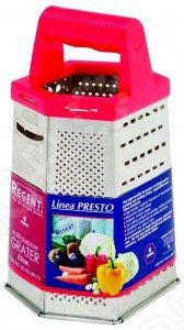 Терка четырехсторонняя Regent 93-АС-GR-70 это прекрасная терка, которая станет вашей верной помощницей на кухне. Она предназначена для быстрой нарезки крупной соломкой, шинковки овощей и фруктов. Высококачественные острые лезвия ножей, гарантирующие быструю и равномерную нарезку. Эргономичный дизайн отлично впишется вашу кухню. None Возможен самовывоз. Есть доставка.