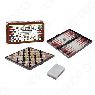 Игра настольная 4 в 1 1 Toy Шашки шахматы нарды карты это компактный набор из четырех любимых многими игр. В набор входят шахматы, шашки, нарды и карты. Доска и фигуры на магнитах, поэтому теперь вы сможете брать свои любимые игры с собой на прогулку или в дорогу и не будете бояться потерять фигуры. Теперь вы можете получить сразу 4 игры в одном наборе! None Возможен самовывоз. Есть доставка.