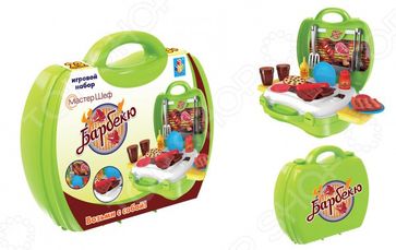 Игровой набор для ребенка 1 Toy в чемоданчике Мастер-Шеф: Барбекю большой многофункциональный набор, куда входят предметы, при помощи которых можно обыгрывать различные сюжетно-ролевые игры. Поможет юному мастеру воплотить в жизнь любую игру связанную с готовкой. Такие игры могут не только принести тонну радости на лицах детей, но и научить их в игровой форме некоторым навыкам работы, а также научить ценить работу, сделанную своими руками. В него входит решетка-гриль, баночки под соусы, сосиски, кусочки мяса, люля, колбаска, лопатка и прочая посудка. Для игры чемоданчик открывается и превращается в рабочий столик с помощью двух прикрепляемых по бокам панелей, которые находятся внутри. С помощью наклеек, которые входят в комплект, маленький повар сам может оформить свою мини-пекарню. Преимущества Качественный материал, окрашенный безвредными красителями. Множество предметов. Широкий спектр возможностей для сюжетно-ролевых игр. Отличный дизайн и хорошая детализация. Все предметы безопасны для использования, края закруглены, чтобы избежать ранений. None Возможен самовывоз. Есть доставка.