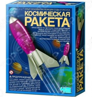 Набор для изобретателей 4M Космическая Ракета это целый научно-познавательный комплект для тех, кто хочет изучить и получить незабываемый опыт. Благодаря элементам из набора, ребенок сможет построить удивительную вещь собственными руками. Построенная ракета может взлететь до 15 метров вверх, используя в качестве топлива уксус и пищевую соль. Для этого в комплекте есть всё необходимое: Прозрачный корпус ракеты высотой 15 см; 3 крыла ракеты; 1 соединительное кольцо; Стартовая панель; Мерная ложечка; Буклет с подробной инструкцией по безопасному проведению эксперимента с интересными фактами ракетостроения. Практические эксперименты и сборка, в последствии, позволят ребенку лучше освоить школьную программу и дадут возможность обогнать своих сверстников по интеллектуальному развитию. None Возможен самовывоз. Есть доставка.