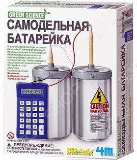 Набор для изобретателей 4M Самодельная батарейка это целый научно-познавательный комплект для тех, кто хочет изучить и получить незабываемый опыт. Благодаря элементам из набора, ребенок сможет построить удивительную вещь собственными руками. Собрав все детали в единую конструкцию, ребенок сможет узнать, что такое электричество и его проводники, и как это всё работает. Для сборки, в комплекте есть всё необходимое: Калькулятор с проводами; Подставка для калькулятора; 2 чернографитных карандаша, 2 держателя для карандашей; 2 разъема для карандашей; 6 винтов; Провод белого цвета; Подробная инструкция на русском языке с забавными фактами. Важно! Потребуется небольшая крестовая отвертка, точилка для карандашей и 2 алюминиевые банки приобретаются отдельно . Практические эксперименты и сборка, в последствии, позволят ребенку лучше освоить школьную программу и дадут возможность обогнать своих сверстников по интеллектуальному развитию. None Возможен самовывоз. Есть доставка.