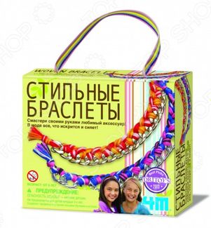 Какая девочка не мечтает создавать уникальные и стильные вещи собственными руками. Иногда вход идут любые подручные средства и маленькие бусинки со старых маминых бус, и желуди, и деревянные брусочки, умело выстроганные папой или дедушкой, и даже небольшие стекляшки. Набор для изготовления браслетов 4M Стильные браслеты удивительный и оригинальный набор для детского творчества, который не только выглядит очень интересно и необычно, но и содержит все необходимые элементы для создания ультрамодных браслетов из ярких ниток и металлических цепочек. Девочке просто нужно проявить фантазию и создать яркий, красочный браслет по своему вкусу! Что входит в набор 2 цепочки. 8 цветных ниток мулине. 4 кольца. 2 застежки. 2 иглы. 2 булавки. Подробная инструкция. Используя эти материалы, девочка сможет создать оригинальные, самодельные украшения под любой наряд и настроение! При желании нитки мулине в наборе можно заменить на мулине или шерстяные нити подходящей цветовой гаммы. Для веселья и обучения! Этот удивительный набор для создания украшений поможет развить у вашей малышки: чувство стиля; логическое и пространственное мышление; внимательность; цветовое восприятие; мелкую моторику рук; безграничную фантазию. Этот занимательный и оригинальный набор для детского творчества станет отличным подарком для любой маленькой модницы и рукодельницы! None Возможен самовывоз. Есть доставка.