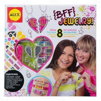 Набор для создания украшений Alex BFF - Лучшие подружки парные украшения для двух лучших подружек. При помощи деталей из набора можно собрать 8 модных украшений для двух людей, например для друзей. На подвески наклеиваются стикеры, поверх которых объемные прозрачные наклейки. Половинки сердечек с инициалами подружек, браслетики с их именами или смешными надписями станут прекрасным модным аксессуаром. А еще, вы можете мастерить украшения вместе, а потом обменяться подарками. В наборе: 2 подвески в виде сердечек, разделенных пополам, 6 металлических плашек для браслетов, шнуры, цепочки, 108 стикеров, соединительные кольца и прочие мелочи. Подходит для детей от 7 лет. None Возможен самовывоз. Есть доставка.