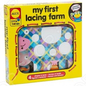 Игрушка-шнуровка ALEX Весёлая ферма станет замечательным подарком как для деток, так и для родителей. Она способствует развитию мелкой моторики рук, внимания и усидчивости. Яркая цветовая палитра и гладкая поверхность игрушечных животных формирует зрительное и тактильное восприятие предметов. Все элементы выполнены из высококачественного и безопасного для детского здоровья материала. Данная модель создана для детей возрастом старше 3 лет. Особенности модели Набор включает в себя четыре яркие фигурки животных: свинки, овечки, уточки и коровки. В фигурках сделаны специальные отверстия, в которые малыш может продевать шнурок. Четыре разноцветных шнурка для зверей также входят в комплект. Ваш малыш может практиковаться в продевании шнурков в дырочки, завязывании и развязывании узлов, бантиков. None Возможен самовывоз. Есть доставка.