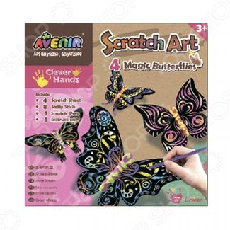 В последнее время такие слова, как творчество и креативность , прочно вошли в наш обиход. Большая часть наборов для творчества предполагает некую деятельность, направленную на получение видимого результата, продукта такую деятельность в психологии называют продуктивной . Ребенку предлагается при помощи имеющихся в наборе материала, инструментов и схемы действия создать что-то свое. Набор для изготовления гравюр Avenir Волшебные бабочки познакомит ребенка с уникальной техникой рисования Scratch Art , то есть техникой гравюры, а также поможет изготовить оригинальные поделки бабочек. В наборе 4 картонные заготовки в виде бабочек с разной формой крылышек и темным покрытием, по которому можно процарапать рисунок специальным инструментом, и несколько проволочек с цветным ворсом. Из них можно смастерить объемное пушистое тельце для каждой бабочки. Подробная инструкция подскажет, что нужно делать. Интересно и увлекательно! Такой увлекательный творческий процесс поможет разнообразить досуг и провести его с пользой для мелкой моторики рук и координации движений. Научит терпению, поможет развить воображение. Расширенная комплектация: 4 картонные заготовки-бабочки для гравировки, 12 пушистых проволочек с ворсом, 1 инструмент для гравировки, инструкция. None Возможен самовывоз. Есть доставка.
