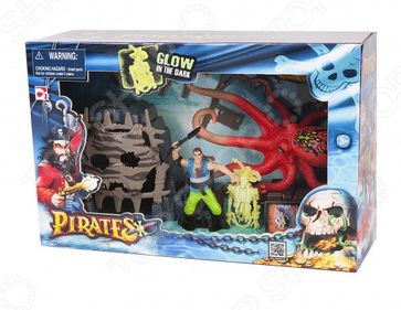 Игровой набор с фигурками Chapmei Пираты: Сражение с осьминогом яркий и занимательный комплект игрушек, которые идеально подходят для сюжетно-ролевых игр. Этот тематический набор позволит разыграть захватывающую и увлекательную сценку, где бесстрашный пират сражается с опасным гигантским осьминогом за сундук с несметными сокровищами. Интересная и необычная тематика, проработанные и реалистичные фигурки все это поможет вашему ребенку проявить фантазию и креативность, а также выступить в качестве маленького сценариста и режиссера. Игра превратится в настоящее приключение! Выполнен реалистично и креативно! Все фигурки и элементы отличаются удивительной проработанностью деталей. Благодаря тонкому и детализированному исполнению, фигурки очень реалистичны и узнаваемы. Масштаб фигурок 1:18. Некоторые элементы имеют движущиеся элементы, например вход в пещеру открывается. Скелет окрашен люминесцентной краской, поэтому светится в темноте. Для более полного антуража в комплекте есть дополнительные инструменты кладоискателя: фонарь, кирка, подзорная труба, лопата, рог и ящик с золотом. Все элементы выполнены из качественного пластика, который отличается своими прекрасными эксплуатационными характеристикам. За счет качественного исполнения фигурки довольно прочные и долговечные. Игровой набор Сражение с осьминогом из серии Пираты будет отличным подарком для любого ребенка! None Возможен самовывоз. Есть доставка.