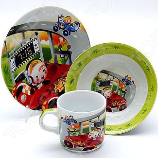Набор посуды для детей Loraine Гонки 23387 включает в себя три предмета: суповую тарелку диаметром 15 см, обеденную тарелку диаметром 17,5 см и кружку объемом 230 мл. Такой набор обязательно понравится вашему ребенку, теперь у него будет свой собственный набор посуды с оригинальным детским рисунком. Этот набор очень функционален. Посуда не тяжелая и не громоздкая. Посуда и кухонные принадлежности компании Loraine это новое поколение кухонной посуды, которое создано ведущими мировыми специалистами с использованием самых современных технологий. Компания выпускает экологически чистые изделия с соблюдением международных норм безопасности, так что вы сможете использовать посуду и кухонные приборы в быту долгие годы без вреда для здоровья. None Возможен самовывоз. Есть доставка.