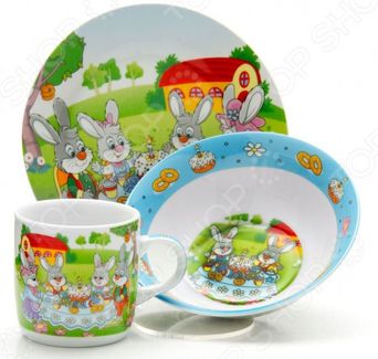 Набор посуды для детей Loraine LR-26096 Зайчики яркий и красочный набор посуды на каждый день, который обязательно понравится вам и вашему малышу. В набор входят 3 предмета: плоская тарелка диаметром 17,5 см, глубокая миска под суп, кашу или салат диаметром 15 см, кружка на 230 мл. Красивая и качественная посуда оформлена красочным рисунком очаровательной семьи зайчиков. Такой набор придется по душе юным поклонникам забавных и веселых зверюшек, которые всегда поднимут настроение! Главные достоинства этого набора Набор посуды выполнен из качественного фарфора, что делает его безопасным для здоровья и легким в уходе. Кроме этого можно выделить ещё несколько достоинств. Устойчив к высоким температурам и различным химическим веществам. Не вступает в реакцию с пищей, не выделяет вредных веществ при нагреве. Прекрасно сохраняет температуру, поэтому напиток или еда будут оставаться теплыми долгое время. Подходит для ежедневного использования, так как устойчив в появлению сколов и трещин. Простой и легкий уход. Порадуйте вашего малыша яркой и интересной посудой из набора Loraine LR-26096 Зайчики ! None Возможен самовывоз. Есть доставка.