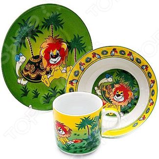 Набор посуды для детей Loraine Львенок 23390 включает в себя три предмета: суповую тарелку диаметром 15 см, обеденную тарелку диаметром 17,5 см и кружку объемом 230 мл. Такой набор обязательно понравится вашему ребенку, теперь у него будет свой собственный набор посуды с оригинальным детским рисунком. Этот набор очень функционален. Посуда не тяжелая и не громоздкая. Посуда и кухонные принадлежности компании Loraine это новое поколение кухонной посуды, которое создано ведущими мировыми специалистами с использованием самых современных технологий. Компания выпускает экологически чистые изделия с соблюдением международных норм безопасности, так что вы сможете использовать посуду и кухонные приборы в быту долгие годы без вреда для здоровья. None Возможен самовывоз. Есть доставка.