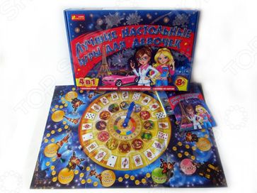Игра настольная Ранок Лучшие настольные игры для девочек 8 сразу четыре увлекательных игры в одном наборе. Шопинг по Европе дарит маленьким модницам возможность посетить самые известные страны, посетить бутики с одеждой от именитых кутюрье и приобрести красивейшие наряды. Волшебный шар откроет участницам таинственный мир, где гадание по цветам, числам и картам привычное дело. Любовь с первого взгляда для юных леди будет настоящим путеводителем в мир сильной половины человечества, поможет им понять, какой мальчик подходит им по характеру. И, наконец, игра Деловая леди расскажет о том, как зарабатывать деньги и объяснит все нюансы различных финансовых операций. В набор входит: 4 поля для игр, карточки Любовь с первого взгляда , таблицы ответов, карточки к игре Деловая леди , фишки к игре Деловая леди , фишки, игральный кубик. None Возможен самовывоз. Есть доставка.