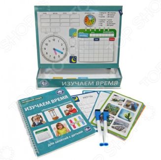 Набор обучающий для ребенка Школа будущего Изучаем время: часы и календарь будет отличным приобретением для вашего любимого чада. Подобные игры невероятно популярны как среди малышей, так и среди их родителей. Весь секрет в том, что помимо развлекательного, они также носят и обучающий характер. В данном конкретном случае малыш в игровой форме учится ориентироваться во времени и определять день недели, узнает как составить первое расписание. Программа включает в себя большое количество упражнений, полезных заданий и игр. Особенности и преимущества Обучение в игровой форме. Простая подача информации. Рекомендовано для детей в возрасте от 6 до 10 лет. В набор входит магнитная доска для занятий, 27 магнитов, 20 обучающих карточек, 2 маркера пиши-стирай и обучающая программа книжка для родителей . None Возможен самовывоз. Есть доставка.